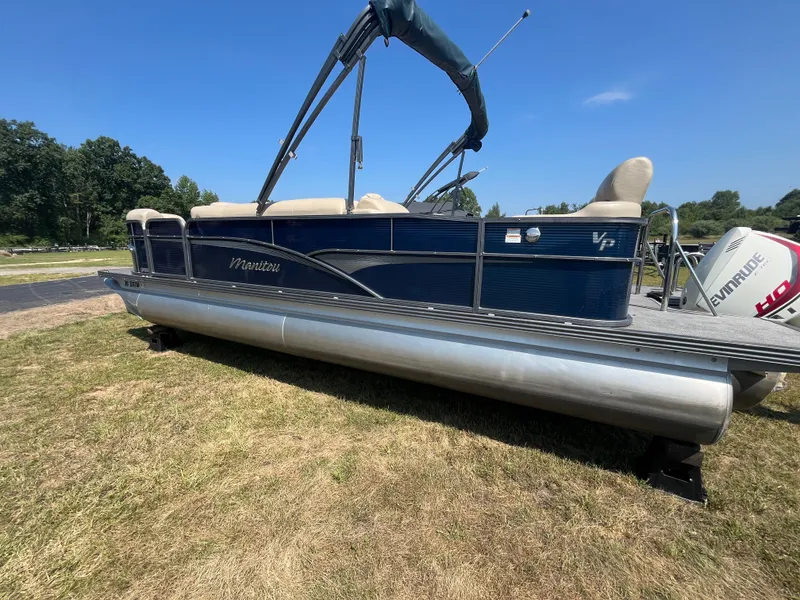 Used 2017 Manitou Oasis 230 VP triple Pontoon, EVINTUDE 150 ETECH Unleaded, 23', Stock # S5801A-Deposit, 2017 MANITOU OASIS 230 VP TRIPLE TOON, 2017 EVINRUDE 150 ETECH WITH POWER TILT, FULL VINYL FLOORING, REAR FACING LOUNGE SEATING , CENTER TUBE FLOOR STORAGE , SKI TOW BAR , ONLY 369 HOURS , ONE OWNER PONTOON , NO TRAILER INCLUDED , PLAYPEN COVER, THIS IS A VERY CLEAN WELL TAKEN CARE OF PONTOON