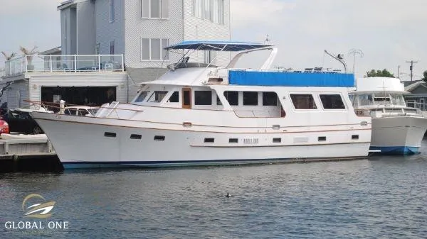 A 1987 62' Marine Trader Med Yacht offers a quality experience for liveaboard or cruising, characterized by solid construction, excellent space, and reliable Detroit Diesel engines.