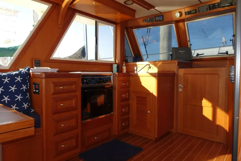 Dual helms allow for operation in any type of weather. And a single Cummins power plant is very economical to run on long passages. Also equipped with a generator and an inverter, this is a great boat for a night on the hook. Wide side decks and thrusters makes for easy handling around the docks. "Miss B Haven" is very clean and is waiting for its next owners.