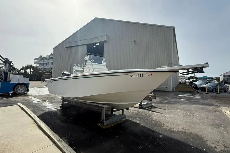Up for sale is a solid center console. This 1995 Marlin 210 made by Daugherty Marine was repowered by our service department in 2012. The engine is a 250hp Suzuki 4 stroke and has just over 350 hours of running time. The boat has been stored inside our dry stack facility and we have done all of the service on the boat (records available per request). The boat has a Garmin 441 GPS, Dual batteries with on/off switch, rear boarding ladder, lean post/tackle center that has 4 rocket launchers attached to the back rest. If you are looking for a solid hull with updated power give us call. 252 726 8744