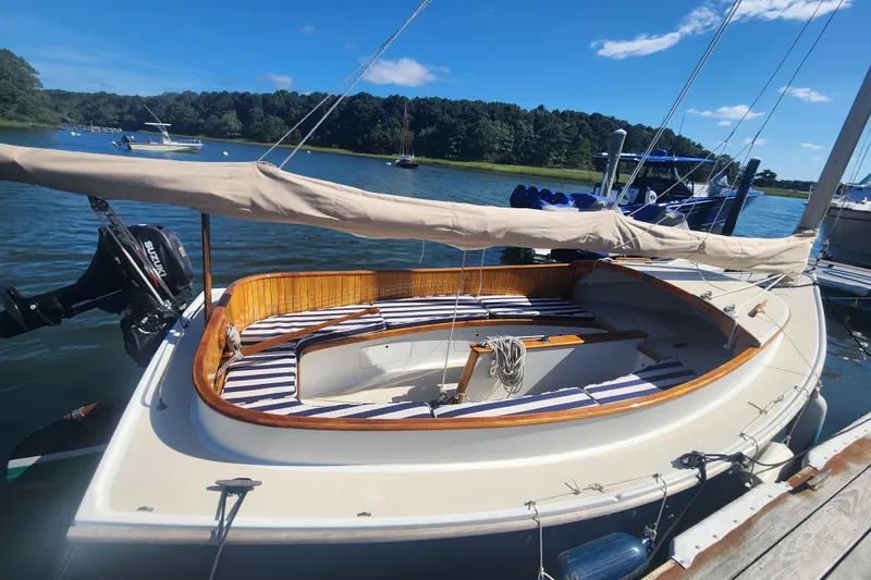 This classing catboat is a joy to sail and a true head-turner in any harbor