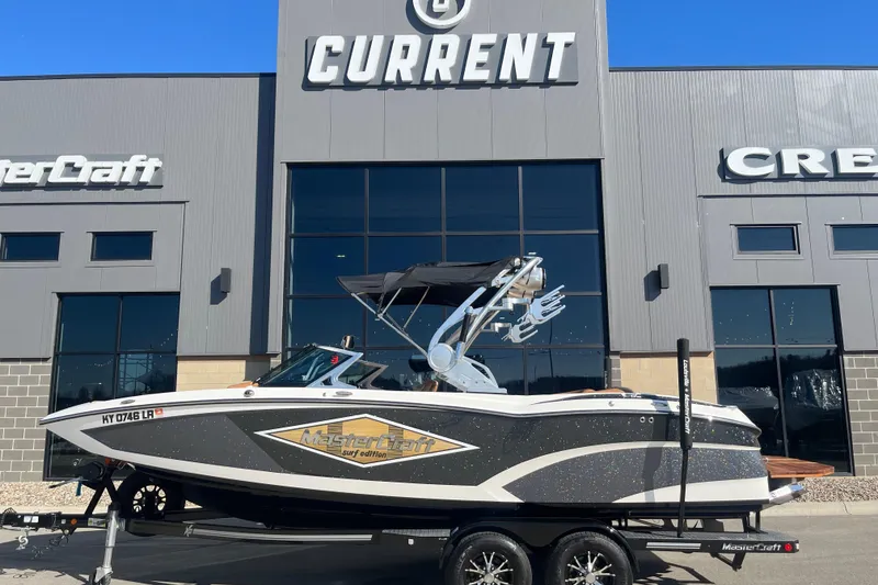 Clean, single owner trade in. This one owner X23 sporting MasterCrafts Gen2 surf system and 3,000 lbs. of ballast was sold new and exclusively serviced by Current Watersports. It has been fully inspected and compression checked in preparation for resale. The engine oil, transmission fluid, and raw water impeller was changed this winter as well as receiving a full detail and new trailer actuator. This boat is extremely clean for its age and 100% ready to hit the water this season. Please contact Current Watersports, Shepherdsville for additional information.