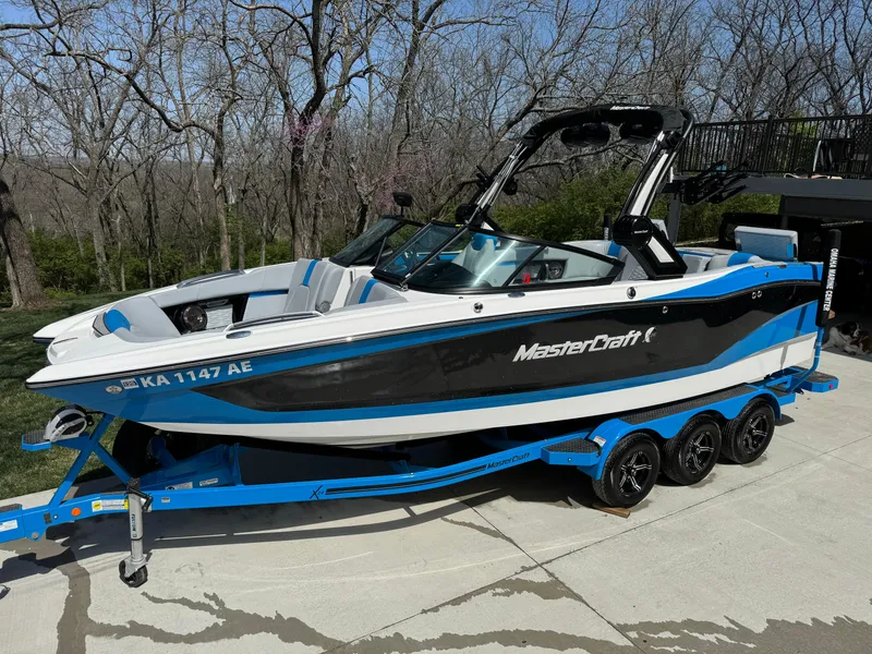 Introducing the incredible power and versatility of the 2022 Mastercraft X24. Stunning one owner with low hours in excellent condition and ready to surf, wakeboard, ski or perhaps just entertain. Summertimes spent in a covered slip on a lift with an over-tower boat cover and stored indoors, this boat has been pampered and is loaded to the gills. Features include SurfStar, Z8 tower, stern thruster, S80 speakers, wireless charging pads, premium PLUS audio and dual screen dash, heated seats, cockpit heater, TRIPLE axle trailer with runway lights and so much more! I am not sure what my favorite thing is about this amazing boat...The black flake paint upgrade looks amazing and sparkles reflect the sun off the water, listening to tunes with a cold beverage in hand while relaxing in the aft facing lounges soaking in the sun feels unreal, but the coolest feature on this boat has to be the stern thruster. During the winterization and oil change the ballast bags and fittings were all replaced at the dealer. Remaining 5 year warranty is available to extend to new owner for a fee to Mastercraft. We custom ordered down to the color of thread and truly built the boat of anyones dreams, but would like to have a smaller boat. Trickle charger for all three batteries keeps them charged and healthy. ORIGINAL MSRP WAS IN EXCESS OF $295,000 Rider pick-ups, putting your boat on the trailer, and docking are easier than ever with the most powerful stern thruster on the market. MasterCraft's stern thruster control is completely integrated into the throttle, allowing you to spin 360 degrees in under 30 seconds. With MasterCraft's stern thruster you'll have the most intuitive driving experience on the water. There is a compartment over the engine that is made to dry out your PFD and make sure it is warm when you put it on next. The sales guy called it a pizza warmer. See the google drive pics...it actually works great for heating up leftover pizza! What a great afternoon that was, we had a full pie leftover from night before, put the box in the compartment when we hit the water, and the time lunch hit, it was perfectly warmed. Another thing I LOVE about the X24 is you can fill the gas tank from left or right side. A little about the 'Premium Plus' option. This was the highest option for audio of four levels if I recall correctly. Salesman actually said, "you don't need that. Nobody needs that." The Dual Screen Premium PLUS Package Includes: 12.1 CTR SCREEN & 10.1" TOUCHSCREEN DASH w/ INTEGRATED GOPRO CONTROL INTEGRATED ICE RADIO WITH BLUETOOTH 4 8.5" KLIPSCH SPEAKERS TWO 7" KLIPSCH HELM SPEAKERS 8-CH AMP, 1-CH MONOBLOCK AMP TWO 11" SUBWOOFERS, GOPRO TOWER MOUNT GOPRO TRANSOM MOUNT REAR FACING TOWER CAMERA The X24-where power and performance meet refinement and poise. From bow to stern, the X24 offers only the best. From world-class wakes and waves to the most plush and premium comfort and an unrivaled fit-and-finish, the X24 is the most premium 24' model in the industry. Offering plenty of room for 18 people, a powerful 6.2L engine, and 4,300 pounds of ballast, the X24 is loaded up to entertain, impress, and outperform on every level. Installed options: HULL COLOR #2 - BLACK MICA FLAKE $1,503 FLOOR COVERING - DECKADENCE GRAY $2,097 MIRROR - ACTIV-VIEW SUPREME $405 OVER TOWER BOAT COVER - BLACK $1,692 BIMINI COVER - BLACK $1,628 STERN THRUSTER $12,843 SURFSTAR SYSTEM $11,052 TOWER - Z8 $10,092 TOWER ACCESSORIES - 4 S80 BLACK CANS $7,282 PREMIUM PLUS AND DUAL SCREEN PACKAGE $7,168 COCKPIT WIRELESS CHARGING PADS $603 STEREO TRANS. REMOTE $423 STEREO OBSERVER DISPLAY $1,297 COCKPIT HEATER $1,403 REMOVABLE SKI PYLON $683 HEATED SEATS - OBS AND HELM $908 STAINLESS STEEL FENDER CLIPS $792 CONVERTIBLE R/S $2,262 TRANSOM LOUNGE SEATING $2,233 HYDRAULIC SEAT LIFT $458 DOCKING LIGHTS $972 AUTO FIRE EXTINGUISHER X24 Triple Axle Trailer $17,702 JET STREAM BLUE METAL PAINTED FENDERS RUBBER DIAMOND NONSKID - BLACK SPARE TIRE HE1827 $818 RUNWAY LIGHTS $397 TRANSOM TIE DOWN STRAPS $198 This top-of-the-line wake boat delivers an unparalleled experience on the water, perfect for adrenaline-seeking enthusiasts and recreational riders alike. Sporting a sleek and modern design, the X24 stands out from the crowd with its aggressive lines and impressive size. Measuring at 24 feet , this boat offers plenty of space to accommodate up to 18 passengers, ensuring no one is left behind. With its deep-V hull, the X24 provides a smooth ride, effortlessly gliding through choppy waters. Equipped with Mastercraft's innovative technology, the X24 guarantees an exceptional wakeboarding and wakesurfing experience. The state-of-the-art surf system creates clean and customizable wakes, while the integrated ballast tanks enable precise weight distribution for the ultimate ride. The customizable touchscreen command center puts you in control, tailoring your wake and wave to perfection. Inside the X24, you'll find luxury and comfort at every turn. Plush seating, premium upholstery, and a spacious layout create a relaxing and inviting atmosphere. Other highlights include a high-quality sound system, ample storage space for all your gear, and advanced safety features. With its stunning performance, cutting-edge features, and luxurious design, the 2022 Mastercraft X24 is the ultimate boat for those who crave excitement and style on the water. Are you ready to take your boating adventures to the next level?