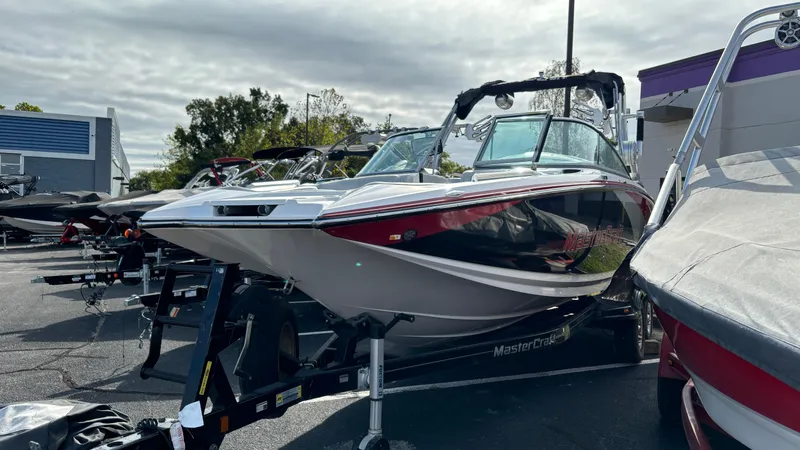 This X55 is clean, well-maintained and ready to hit the water. Ilmor MV8 6.2L (382HP, 235.2 hours), Underwater lights, Wake tower w/ bimini, strapless board racks & (2) JL can speakers, Clarion stereo w/ helm remote, JL Audio speaker system w/ amp, Hybrid touchscreen color helm display, Heater, Bow ladder, Bow filler cushion, Convertible front/rear facing passenger seat, Enclosed head compartment w/ porta potti & fresh water sink, Dual battery switch. Trailer included! Call today for demo scheduling!