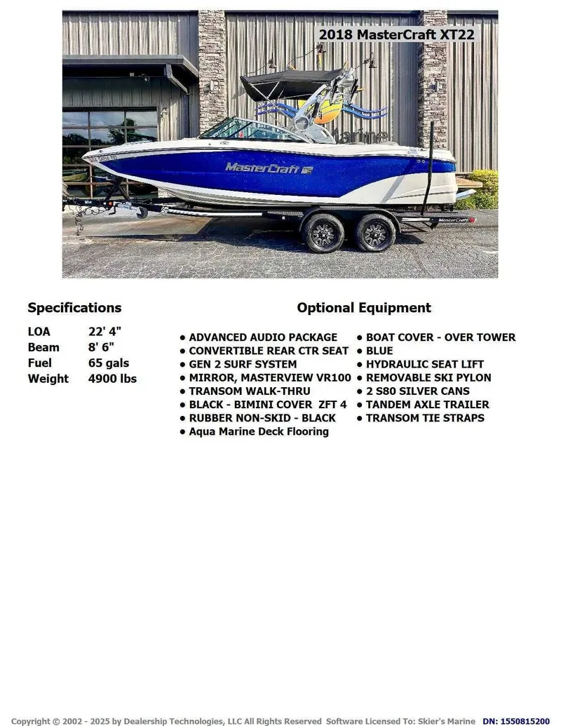 Contact Skier's Marine Atlanta about 2018 MasterCraft XT22