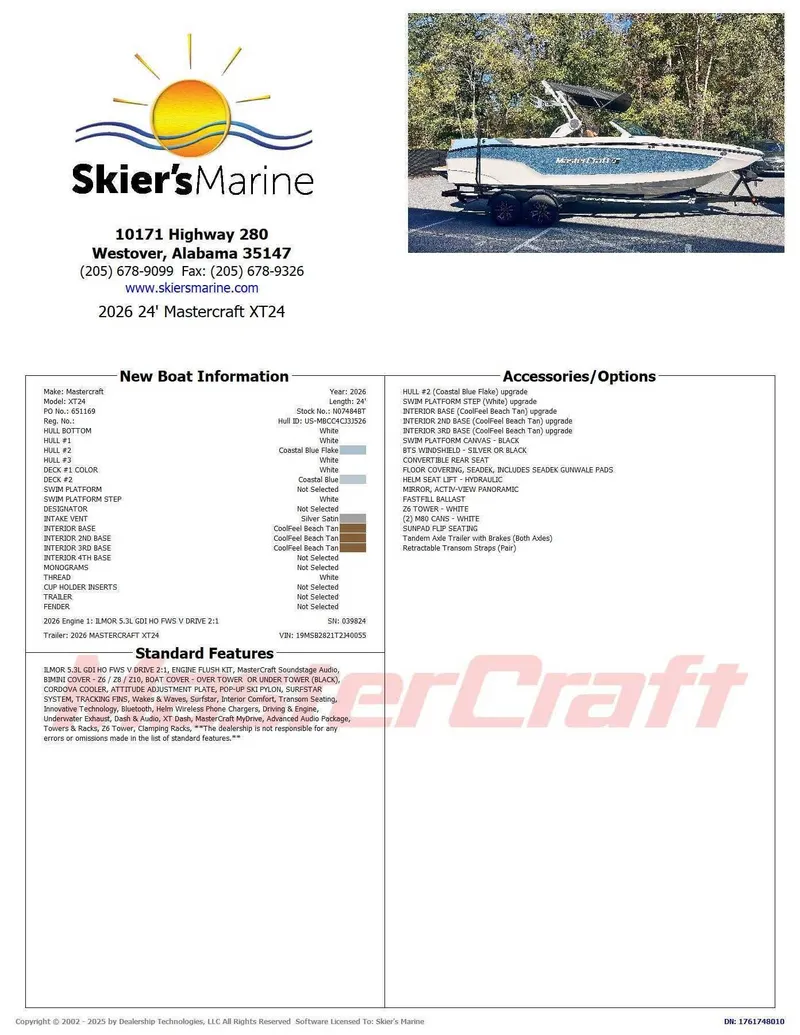 2026 Mastercraft XT24, The 2026 MasterCraft XT24 is a 24-foot luxury towboat combining power, comfort, and style for up to 17 people. It delivers massive, customizable surf waves via the advanced SurfStar system and up to 3,600 lbs of ballast. Key features for 2026 include a redesigned helm with a 12-inch touchscreen and new keyless entry, plus the all-new, immersive MasterCraft SoundStage audio system powered by Meridian Audio. A new Ilmor-powered stern thruster option and CoolFeel vinyl seating enhance control and comfort. Po