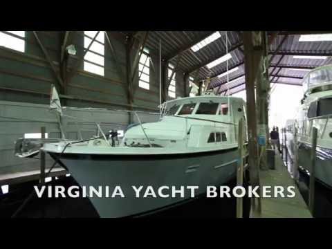 Classic motor yacht with 2002 Volvo Penta D12C 700hp diesels. One of the engines is in the process of being re-built and will be in working order for the new owner. Just a few of the features of this boat include a bow thruster, low profile dinghy hoist with dinghy on the aft hardtop and a roomy three stateroom layout with a large salon and a roomy enclosed aft deck.