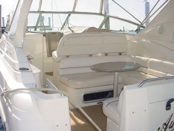 this is a clean, well cared for family cruiser. her twin 4.3's will cruise in the mid 20's with the mid 30's as top end speed. well equiped with a/c, new radar and gps chart plotter, A/C,full canvas, transom door, large swim platform, swim ladder, windlass w/ anckor and rode. walk thru windshield, cockpit tablr with surround seating. large helm station seats two. sleeps six, master is a queen forward, gueat is a convertible mid cabib. dinette sleeps 2 more. enclosed hesd with matine toilet w/ holding tank, shower and sink with hay and cold pressure water. galley dowm to port with stove, sink, counter space and ample storage. hot and cold pressure water Faux teak cockpit SEE FULL SPEC'S FOR MORE INFO. call today for appointment before she is pulled for the winter.