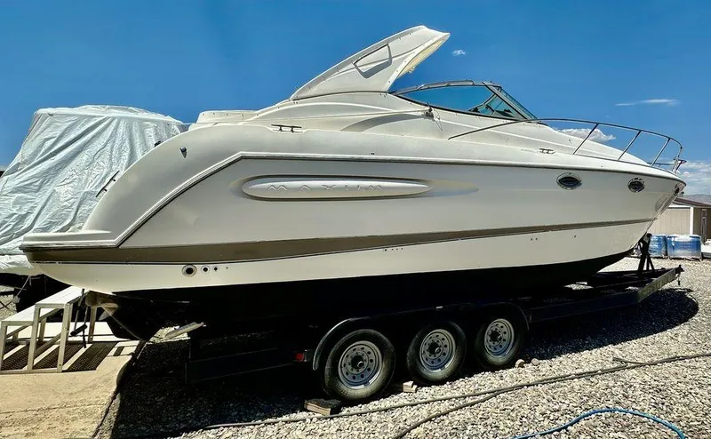Introducing the 2002 Maxum 3300 SCR, a stunning cruiser that combines elegance with performance. This 36-foot vessel features a robust fiberglass hull, ensuring durability and a smooth ride on the water. Powered by twin Mercury 8.1 inboard/outboard engines, each delivering an impressive 494 horsepower, this boat promises exhilarating speed and reliability for all your adventures. Designed for comfort and functionality, the Maxum 3300 SCR is perfect for day trips or weekend getaways. Its thoughtful layout offers ample space for relaxation and enjoyment, making it an ideal choice for both family outings and entertaining friends. The vessel is equipped with essential features, enhancing your boating experience. With its sleek design and powerful engines, the Maxum 3300 SCR stands out as a remarkable choice for those seeking a used cruiser that delivers both style and performance on the water.