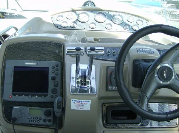 This Maxum 3700 balances comfort and performance. Super low hours. E series Raymarine electronics. She has a wide 13 ft. beam which allows for a roomy interior and a large cockpit area. Optional extended swim platform, very nice custom stainless dinghy rack/deployment system, and full camper canvas are just a few additional nice deck features included. She also has two private cabins, a full galley with plenty of storage space, and a large head with separate shower. Twin MX 6.2 MerCruisers will reach a top speed of around 24 knots. She has a brand new Kohler 7.5 KW generator to power all systems including the reverse cycle heat and air conditioner. The bow & stern thrusters make for easy docking. Maxum is one of the largest manufacturers of fiberglass pleasure boats in the world, headquartered in Arlington, WA.