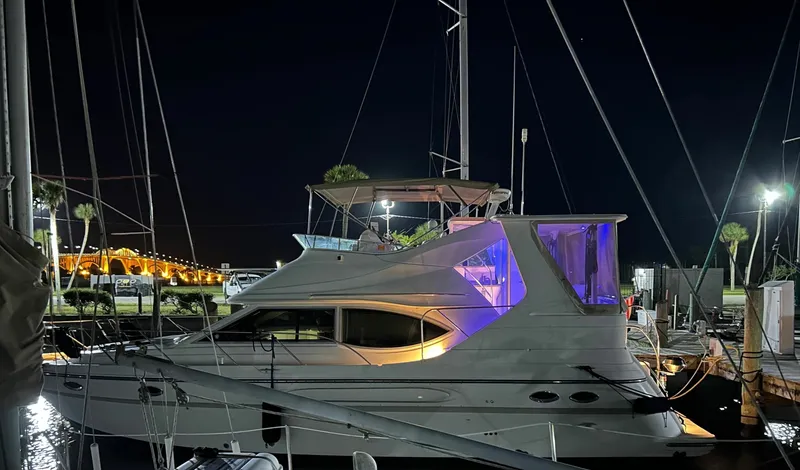 This meticulously maintained 1998 Maxum 4100 SCA offers a nexus of luxury, performance, and style. Turnkey ready for the next owner with many useful upgrades, "Knot Complaining" is well suited for liveaboards, short and long-term cruisers, and Great Loopers. The Salon layout is perfect for entertaining, with a spacious floorplan open to the galley and dinette. The Maxum 4100 SCA has two luxurious Staterooms, including a very spacious master aft Stateroom. The VIP forward Stateroom features a door directly into the bathroom as well as a galley door providing privacy and easy access to the ensuite head. The galley is fully equipped with a large refrigerator/freezer, induction stove, newer convection microwave (High Pointe brand), and adequate counter space, making this a great vessel for long term trips. With more than adequate storage options, there is plenty of storage space for a liveaboard. Owner has installed beautiful colored accent lights on the aft deck and exterior that increases its aesthetic at night and creates ambiance. Bottom was painted with Sea Hawk Cukote, and fresh anti-foul on running gear in February 2025. Key cosmetic upgrades made by the owner such as new carpet, countertops, and LED lighting give this boat a modern feel. Whether you plan to take her on the Great Loop, Bahamas, or beyond, this Maxum 4100 is well equipped for the journey.