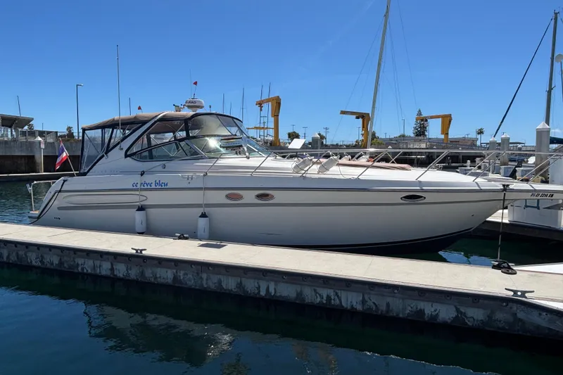 Welcome to 'Ce Reve Bleu', a 1997 Maxum 4100 SCR, an express cruiser designed for both comfort and performance on the water. She offers ample space for relaxation and entertaining.