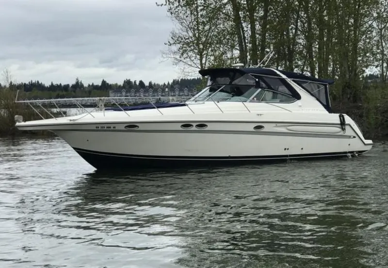 Introducing the 1998 Maxum 4100 Sun Bridge SCR, a remarkable express cruiser that seamlessly blends performance and comfort. With an overall length of 44 feet, this vessel boasts a sleek fiberglass hull designed for both stability and elegance on the water. Powered by twin T-Mercruiser 8.2 Fuel Injected engines, each delivering an impressive 430 horsepower, it offers exhilarating cruising speeds of up to 18 mph and a maximum hull speed of 28 mph. Accommodating two cabins and one head, this boat ensures a comfortable retreat for family and friends. The electric windlass enhances convenience, making anchoring a breeze. With a total of port engine 1,234 (rebuilt at 1,000 hrs) and starboard 1675 hours on the engines, this used cruiser has been well-maintained, ready for new adventures. Experience the perfect blend of luxury and performance with the Maxum 4100 Sun Bridge SCR, where every journey becomes a memorable escape. This vessel is boathouse kept and in fresh water!