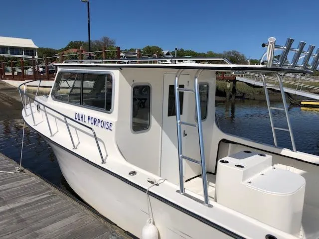 This May-Craft 2700 pilot house is powered by two Suzuki 200 hp outboard engines with around 500 hours. The boat is bright white with chrome accents. It comes with full enclosure, large rear deck, transom fish box, large live well, rod holders, wash down, GPS/Fish finder, all safety gear, and tons of other great features. The boat is in Southport North Carolina and can be seen by appointment. If you are looking for a great pilot house that is ready to go, then check this one out.