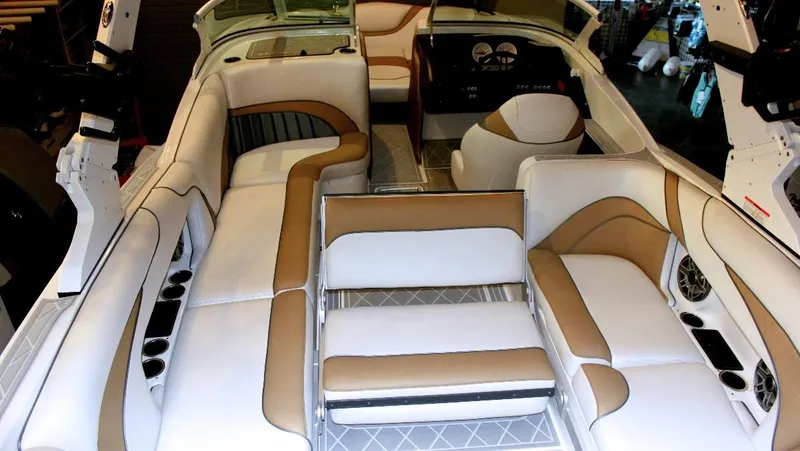 JUST REDUCED !! -- Very Nice One-Owner Lake Arrowhead Only MB B23 Alpha Edition. Features: Only 125 hours on the 6.2L Indmar RAPTOR 400, MB Switch Surf, Plug & Play Ballast, Audio w/ Tower Speakers & Amps, Board Racks, Bimini, Cover, Depth FInder, Cruise Control, More !!