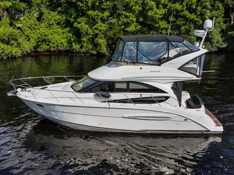 This 2008 Meridian 341 NSB was delivered to its first owners in 2008, sold to its current owners in 2021 and is now a great opportunity for its third owners. Maintenance logs from the boat's original sale to date are available, as well as surveys from its original purchase as a new boat, the survey from its second purchase to the current owners, as well as a third survey conducted January 14, 2025. This recent third survey is available for those seriously interested in buying this boat. The boat is located in freshwater at North Myrtle Beach, SC and has been meticulously cared for by the owners.