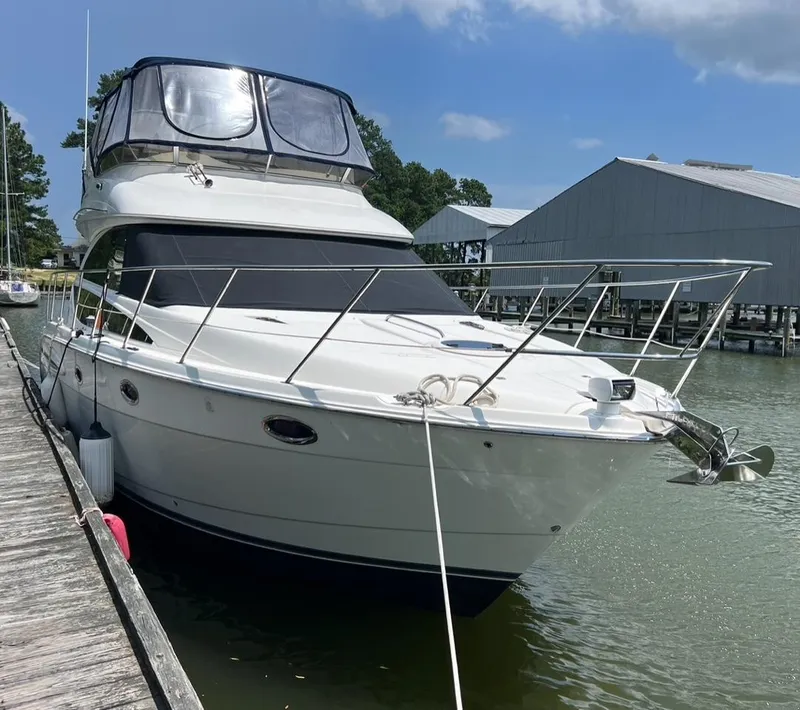 Knowing that some family cruisers look like minivans, Meridian designed its 391 Sedan to bring the styling and performance of a sportscar to the class without losing any practical features. This attractive yacht's sleek profile conceals a wide-open salon with warm cherry-wood interior, premium-gloss finish, homelike seating arrangements and 360-degree views of the horizon. She also features a dedicated dinette and fully-equipped galley that are seamlessly integrated into the main living space, two large staterooms and separate shower and head compartments, each with its own vanity and sink. The flybridge's distinctive overhang offers more space topside as well as cockpit weather protection, and its molded-in steps are hinged to provide direct engine-room access. Why settle for a floating box on the water when you can enjoy all the style, performance and comfort of the 391.