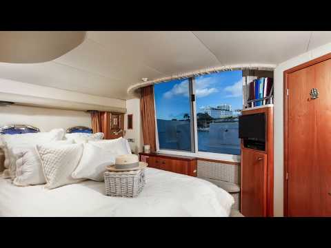 - Aft master stateroom with private cockpit patio and sliding glass door