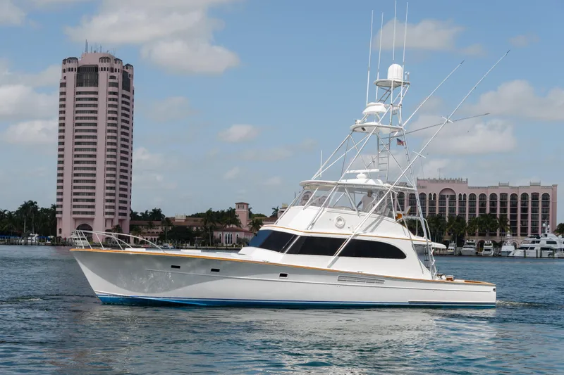 The Ship's Cafe is a turn-key vessel featuring a completely refurbished in 2010 with new hull paint in 2025, the boat is powered by MAN V10-1100 engines (repowered 2007) that received a complete rebuild in 2025. This setup delivers an economical 60gph cruise, stabilized by two SeaKeepers (2020). The 2025 refit added new Garmin electronics and two new Kohler 24KW generators. Performance-ready for offshore use, she comes equipped with a Palm Beach tower, mezzanine seating, and an Eskimo icemaker.