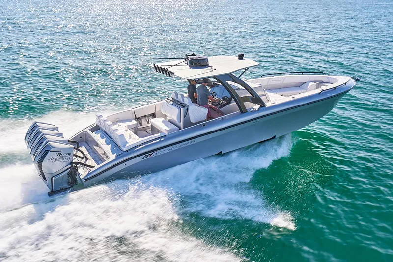 This 2020 37' Open Midnight Express with quad 450R Mercury Racing motors is ready for its new owner just in time for summer.