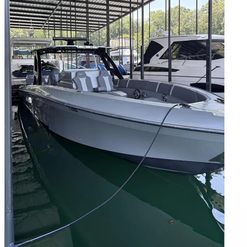 The 37' Open allows for a full customization including colors, seating, electronics... you choose the design and layout that works for you. Optional Side Entry Dive Door, T-Top or Arch Top, full stand up head and shower in the console allow you ample storage and endless opportunities.