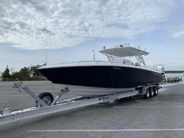 This basically brand-new 39 is available with no wait time. Boat has quad 400R's with under 300 hours on them. Full Garmin package, Flir, bow thruster, Carbon Fiber hard-top, Carbon Fiber side dive door, up-graded helm seating. For complete list of option call broker for build sheet. Also included is a 2019 trailer and canvas covers.
