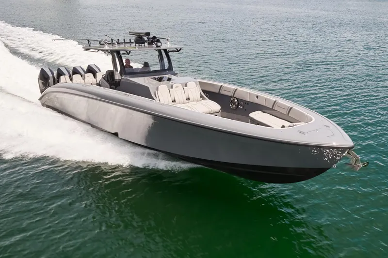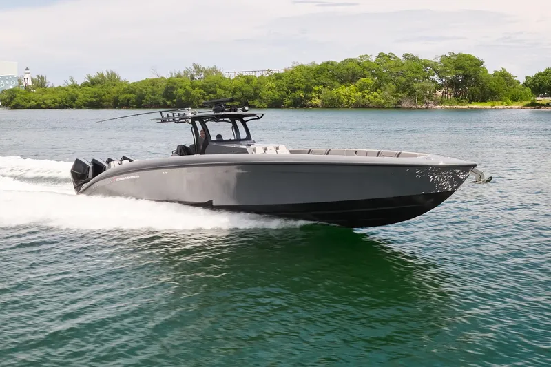 2025 43' Open Midnight Express with quad 400R Verado Mercury 4 stroke motors with HD gear cases
