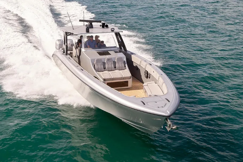 With a deep-V hull, the Midnight Express 43 Open offers a smooth and stable ride. Spanning 43 feet in length and a beam of 12.5 feet, it provides ample space for relaxation and entertaining. The spacious cockpit features versatile seating options and newly installed JL Audio speakers for enhanced entertainment.