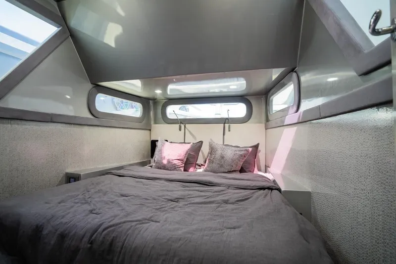 Twin master cabins in the 30-foot long center console are available to customize with your own finishes and layout.