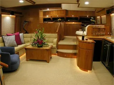 The fully enclosed airconditioned flybridge with a raised settee and table offers comfort and superb views! Four control stations (Main and aft flybridge, cockpit and Marlin Tower) gives the Captain tremendous options!