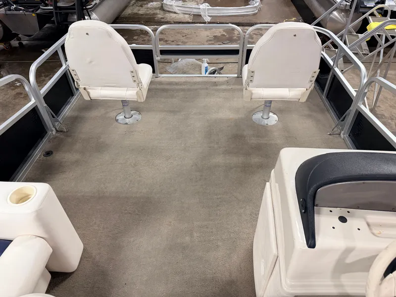 2006 Misty Harbor 1880 CF Explorer Pontoon with 40HP Mercury Fourstroke EFI Outboard. This quad fish, or four corner, fishing pontoon features 4 fishing seats; 1 in each corner of the pontoon. There are 3 entry gates on-board; 1 in the front, and 1 on each side, behind the fishing seats. There is a L-shaped couch with table amidships on the port side. The helm on the starboard side features a Tachometer, and an access door on the side of the helm to store items or access the wiring in the helm. The captain's chair is a low back sport seat with swivel and slide functions. The rear fishing seats have a livewell between them with a cushioned lid which could also be sat upon. There are consoles on each side with a cup holder in each. The port side has a portable fuel tank in the console and the other holds the starting battery and has room for more storage. This Pontoon is rated for 9 people Warranty Is Included In Sale Trailer Not Included But Available For Use Or Purchase $11,995 Boat World 21155 Highway 65 NE East Bethel, MN 55011 For More Used And New Pontoons Visit Us @ BoatWorldMN.com [https:\\www.boatworldmn.com] or Call (763)434-9655