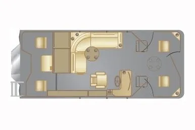 You can easily lose track of time with every cast while enjoying the comfort of hand-made fishing seats which offer 18 different seating configurations for every occasion. The helm is dressed with a chrome sports steering wheel that fits perfectly in hand, and a full instrument panel that monitors your boat's performance. A rear live well stores your keepers as you continue adding to their numbers. There's full length welded skirting under the decks, lavish carpeting that puts softness under your every step, and standard durable vinyl flooring. These pontoons feature plush cushioned seats with color accented furniture that nicely blends exterior fencing colors into the furnishings. The Sports Seat captain's chair is positioned perfectly at the helm with seat slider and swivel capabilities. The Marine grade stereo system with USB/Bluetooth paired with four speakers. Let the eight and a half foot Bimini stretch out to provide the right amount of cover. Adventure fish model pontoons have four different standard layout options in either 18', 20' or 22' deck lengths.
