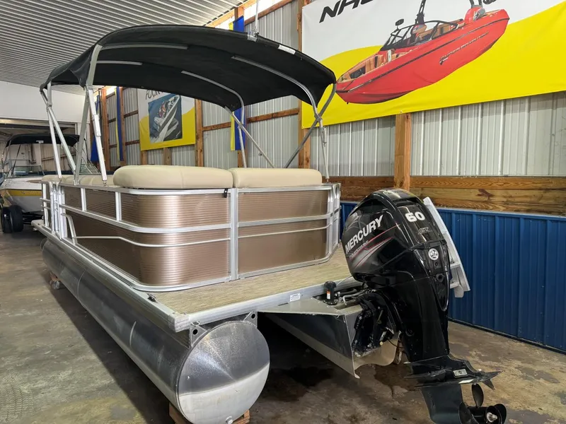 Clean pontoon, 60hp Mercury 4-stroke fuel injected engine, includes bimini, upholstery is in great shape, does have a few dings in panels as shown in pictures but overall in great shape. Has walk through back gate with fold down swim ladder. Has vinyl flooring so it dries out quicker