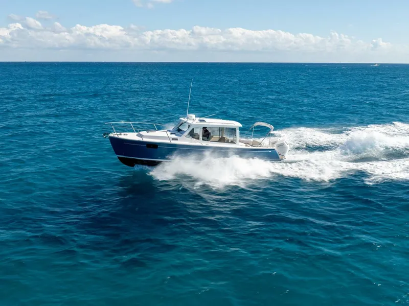 - Twin outboard power for exceptional handling and efficiency