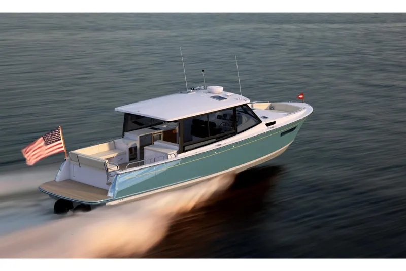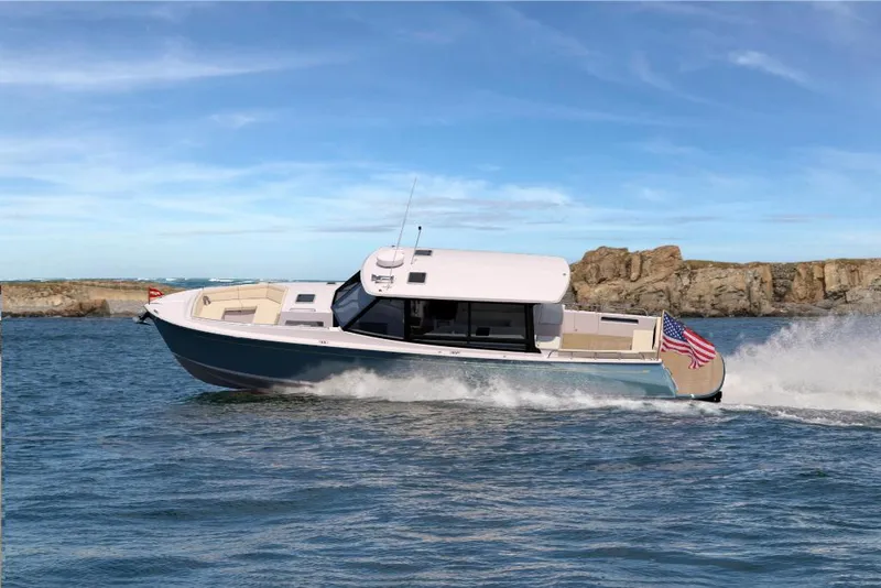 The evolution of a day yacht. MJM yachts are world-renowned for their timeless style, high-tech construction, and superior materials. The 4z is an impressive day yacht featuring 4 social zones and a galley-up layout. Below deck features a large v-berth as well as a double berth amidships. With the protection of a pilothouse, innovative spacious layout, and exceptional stability, she is all about style, comfort and fun. Built in the U.S.A. A crossover day yacht with MJM's stunning good looks and inspiring Carolina downeast style. She is a unique blend of an open bow day yacht and performance cruiser with impressive overnight accommodations. Enjoy the adventure of day yachting or extended liveaboard cruising. Enjoy the spacious and secure comfort of the bow area while chatting with friends. The all-weather, all-conditions, indoor-outdoor pilothouse has all the amenities for day yachting. The galley-up design puts it right in the middle of all the action. More adventure, more luxury. Open air never felt so good, or so safe. The day starts with perfect weather for the run to a new beach, sand bar, or island. Epic family times ensue. The horizon darkens and the other boats pack up and leave early. We've all been there, but your 4z enables another hour or two of paradise to yourselves. The open air layout transforms to a weatherproof, dry, air-conditioned pilothouse. Everyone is happy.