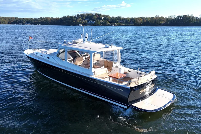 Few boats so precisely meet their intended goals. The 40z marries performance with outstanding fuel efficiency, extended couple cruising with trend setting day boat sociability, safety and ease of movement with a single level deck and two steps to the cabin. Volvo IPS joystick technology eliminates stress around docks. The 40z's 12' beam and low overall height makes transport to your favorite destinations easy.
