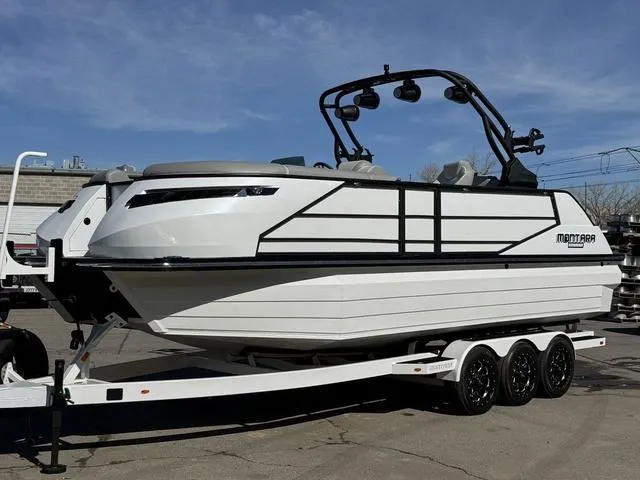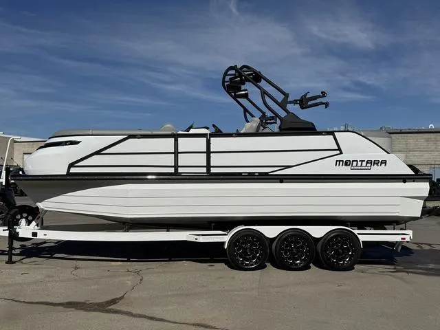 2025 MONTARA 25' SURF BOSS 2.0 CWDH, Here is your chance to own another custom Boat Ranch edition Surf Boss! We have fully paint matched the Hull in PPG marine gloss white and wrapped the paneling in a stunning metallic white to make sure this boat look as good as it preforms. With custom RGB Montara logos and exterior lights to match the under water lighting your Surf Boss will light up the lake. Worried about the cooler morning and nights? Don't be, with the upgraded triple vent heater you will feel like the summer sun is warming you all day. Come visit us and see how stunning this boat truly is.