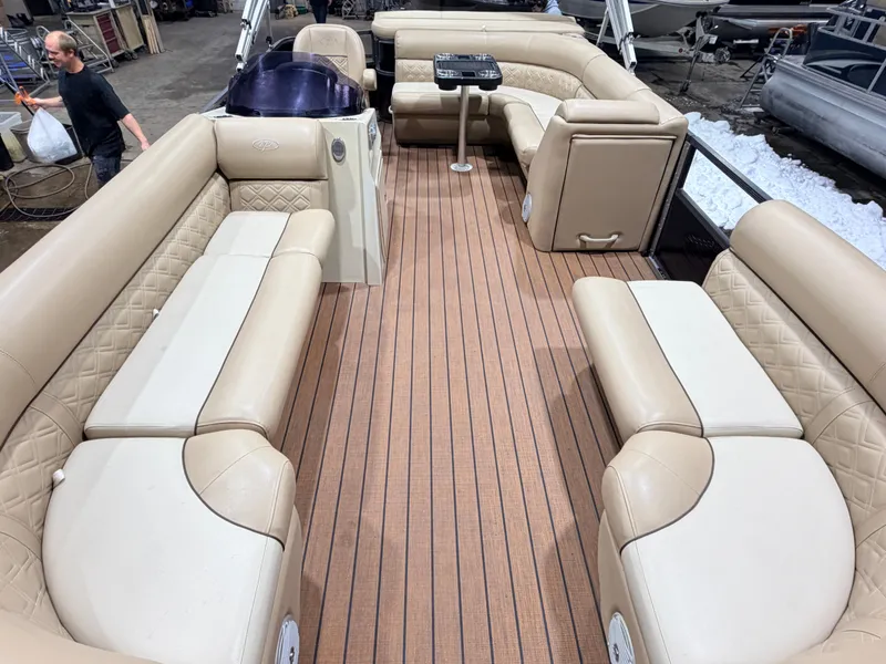 2020 Montego Bay C8520 Cruise Deluxe Pontoon with **BRAND NEW** 90HP Honda Fourstroke EFI Outboard. This cruise model pontoon features 2 couches in front along with an L couch amidships. There is a table mounted at the L couch and the front, lounge end of the couch has a flip up privacy/changing station in it. There is a sun deck behind the L couch with room for storage, a portable fuel tank, and the starting battery. The fuel tank has a divider between it and the rest of the storage. On the starboard side are the helm and captain's chair. The captain's chair is a low back sport style seat with swivel, slide and recline functions as well as fold up arm rests. There is a courtesy light on the side of the helm. The helm has a Speedometer, Tachometer, and Volt gauge. There is a Guzare Bluetooth audio stereo system. The rear entry gate leads out to a swim platform and a fold down swim ladder. There is also a swim platform on the bow of the pontoon. This Pontoon is rated for 10 people Warranty Is Included In Sale Mooring Cover Is Included Trailer Not Included But Available For Use Or Purchase $25,995 Boat World 21155 Highway 65 NE East Bethel, MN 55011 For More Used And New Pontoons Visit Us @ BoatWorldMN.com [https:\\www.boatworldmn.com] or Call (763)434-9655