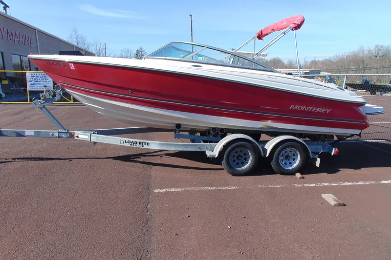 Really nice Monterey Bowrider. This is a 21' boa,t but with the extended swim platform upgrade, it makes it 23'. Includes a bimini top, bow and cockpit cover, full mooring cover, and a galvanized tandem trailer with brakes on both axles.