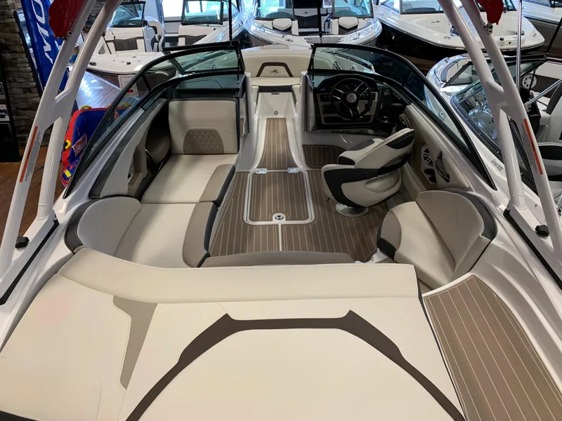 The high performance ride you’ve been waiting for, the 224FS’s luxurious features include back-lit Faria gauges with stainless steel bezels in the helm, spacious seating, ample storage, and a large sun deck. Plus, sporty features like our exclusive air assist chine makes fast handling a breeze while the optional factory installed wakeboard tower makes catching big air an out of the world experience.