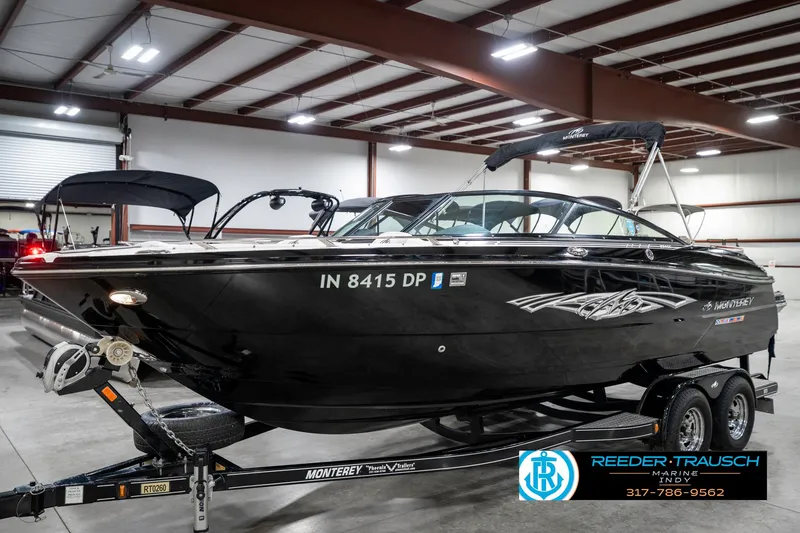 The 2013 Monterey 234 SS, finished in sleek black, is a high-performance sport boat designed for ultimate fun on the water. Powered by a 350 HP Mercruiser engine, it delivers thrilling speed, smooth handling, and a premium boating experience.