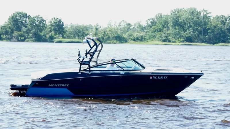 Equipped with one of the largest sun pads in the industry for a boat of this size, the 238 is a sun worshiper's delight! The sunpad also features the Monterey Signature flip up backrest for aft facing transom seating. The 238 also comes with Monterey's highly popular trunk storage for all your accessories and gear.