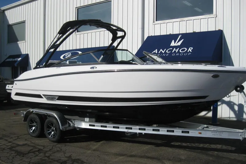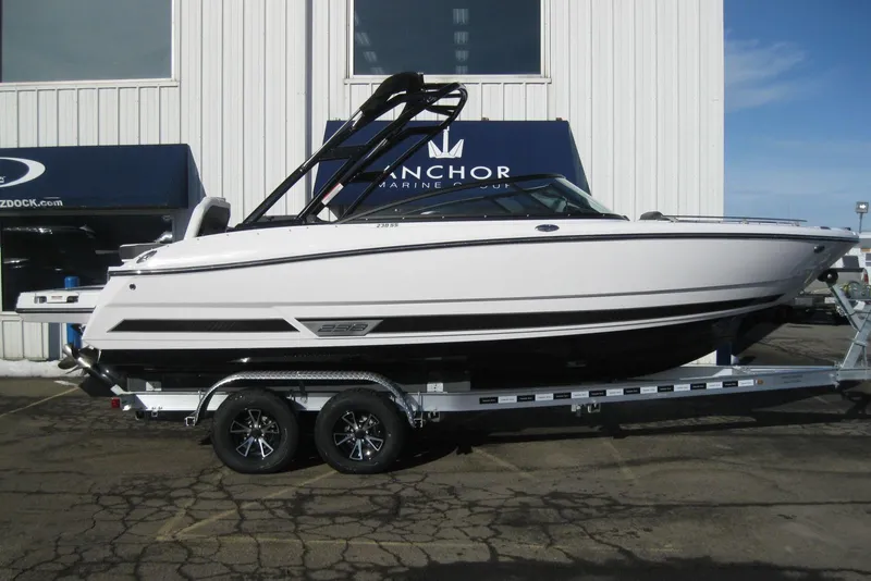 2025 Monterey 238 SS. Very popular 23' sport boat, powered by the Mercury 4.5L 250hp I/O with DTS (digital throttle and shift) and Bravo III Outdrive. Onyx #2 colors w/ black hullside bottom, anthracite upholstery, black wakeboard tower w/ integrated bimini top, twin Simrad touchscreen MFD's w/ engine data integration, Fusion bluetooth stereo system, snap out woven flooring, cockpit table, bow & cockpit covers, and comes with a Venture tandem axle aluminum trailer. Monterey Winter Sales Rebates of $6,000 Included - Expires March 2026!