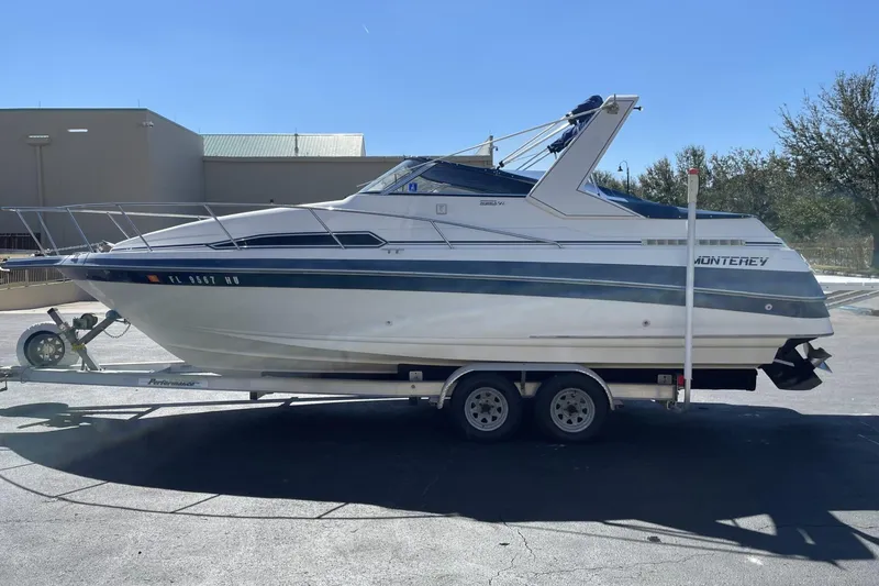 Introducing the 1993 Monterey 250 Cruiser, a stunning bowrider that combines classic charm with modern performance. This 25-foot vessel features a robust fiberglass hull with a Deep Vee shape, ensuring a smooth and stable ride on the water. Powered by a 2007 Mercury Mercruiser 6.2L engine, this boat delivers an impressive 325 horsepower, making it perfect for thrilling outings and leisurely cruises alike. With only 416 hours of use, this well-maintained craft is ready for new adventures. The inboard/outboard configuration and stern drive provide excellent maneuverability, enhancing your boating experience. Designed for comfort and enjoyment, the Monterey 250 Cruiser is an ideal choice for families and friends looking to create lasting memories on the water. Embrace the freedom of the open sea with this exceptional bowrider, where every journey promises excitement and relaxation.