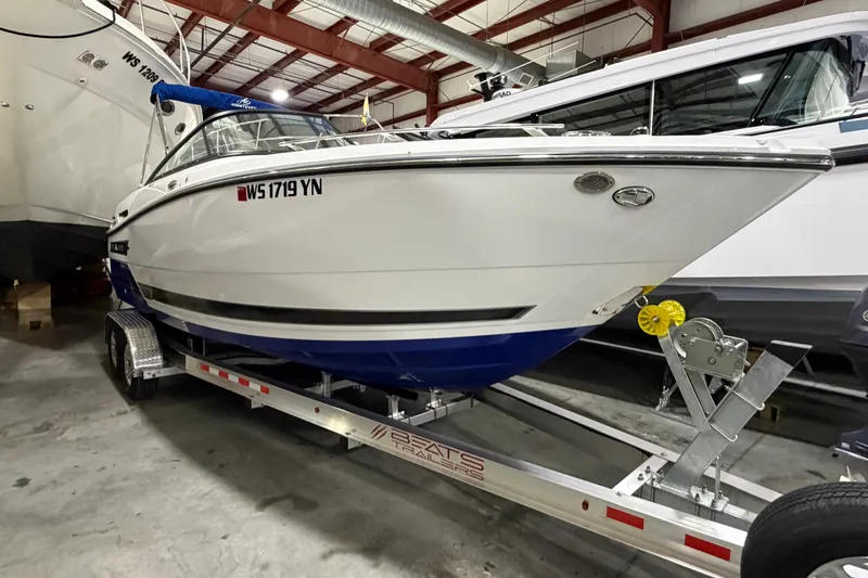 This Boat was left over stock that was just sold this past summer. Owner is looking to move up, Boat is like New. Comes with a New Custom Aluminum Tandem Axle Trailer. She is currently Stored indoors in heated Storage.