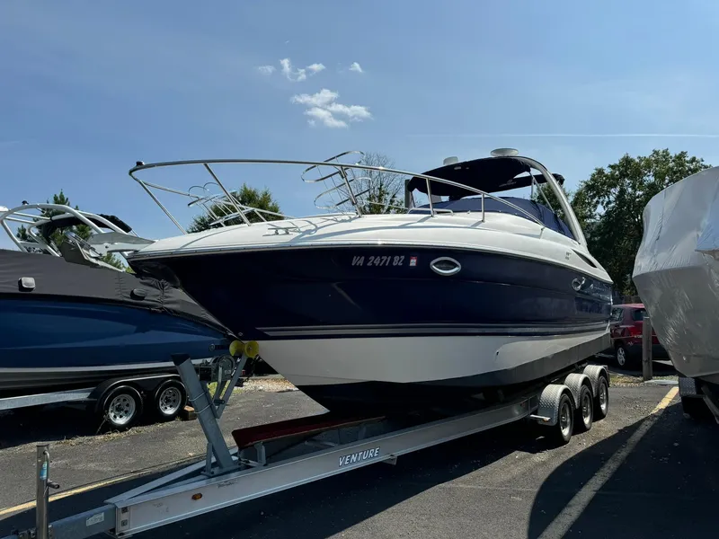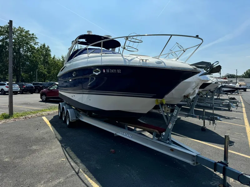 The 270 Cruiser's beauty isn't only skin deep. Below its sophisticated European styling lies the power and agility of a performance cruiser. The huge cockpit leaves nothing to desire. At the transom, there is a fold-away bench seat plus a transom door for easy access to an integrated swim platform. The port side wetbar is truly a winning touch and there's even a removable cooler nearby. It's everything you deserve and more. There is full-size headroom aboard the 270. Loaded with appointments, it is one of the most livable 26-footers on the water. Slip into the plush comfort of the U-shaped dinette which converts to a comfortable double berth with plenty of storage below. The aft cabin comes complete with double berth. The private, enclosed head features full standing headroom along with shower, marine toilet, vanity storage, and a sink with faucet and showerhead. The 270's comfortable accommodations will remind you and your guests of home. Helm Station: Dash with full instrumentation. Adjustable helm seat allows driver to sit or stand in total comfort. Stereo remote control. Removable Transom Seat: Rear transom bench seat can be removed for added cockpit space for fishing or entertaining. Portside Cockpit Wet Bar: The cockpit houses a convenient wet bar with drink holders, sink, cooler and storage. Molded-in portside chaise lounge. Walk-Thru Windshield: Allows easy access to foredeck and sunpad via molded fiberglass steps.