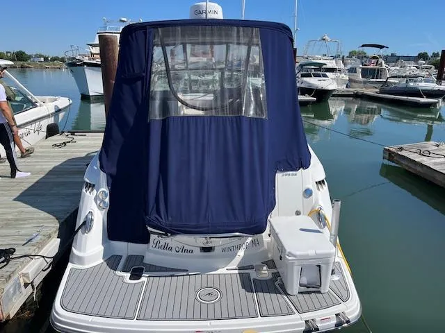 Distinctive lines and superior performance define the 295SY. With a 29' length and a wide 9'2 beam, the 295SCR is roomy, comfortable and stable. The stylish helm features a dual helm seat with flip up thigh rise bolster with ample storage underneath. The large wet bar is perfect for preparing snacks and drinks. The integrated swim platform is both stylish and functional, allowing easy access in and out of the water via a telescopic stainless steel boarding ladder.