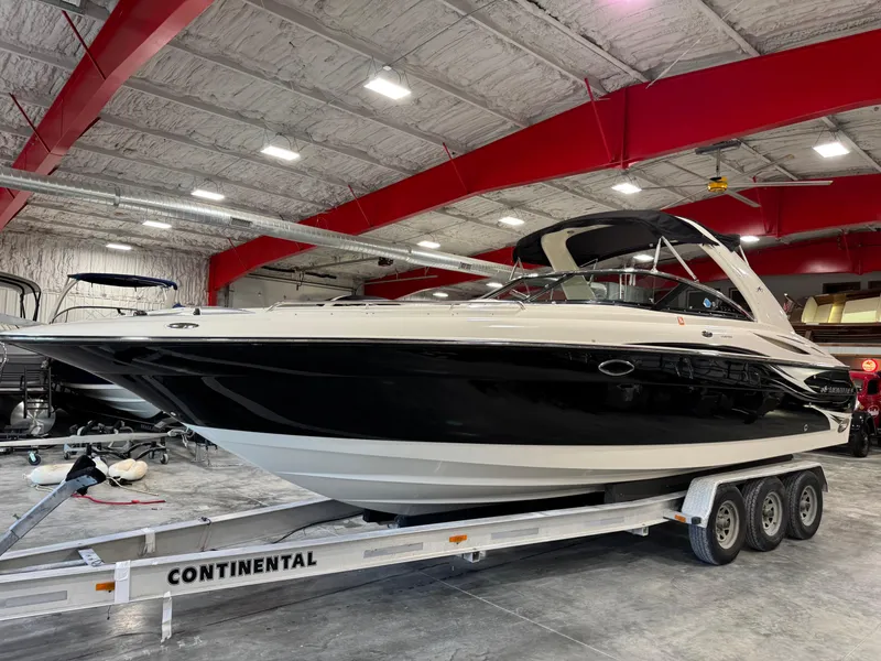 !!! Only 149 Hours !!! Twin 320 HP V-8's !!! This is a great price on an extraordinary clean low hour 32 foot bow rider equipped with twin Volvo penta 5.7L GXI 320 hp V8's, duo prop drives, captains, call exhaust, factory arch, bow and cockpit cover, bow and cockpit carpet, extended swim platform, walk-through transom, AM/FM stereo, and more. Price does not include Trailer but we have used if available for $8500 or new for $10,500. Financing and delivery are available. We accept trades.