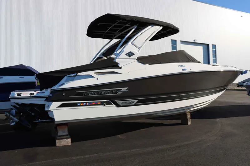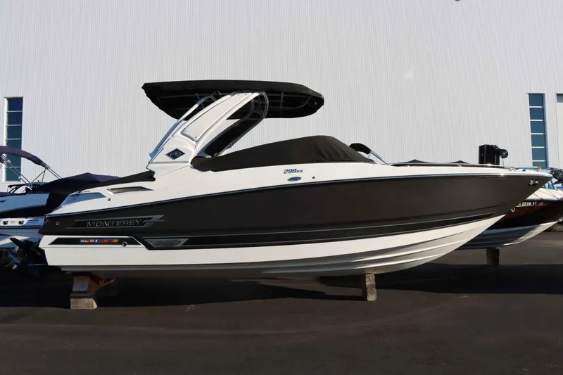 The 2023 Monterey 298SS is a sleek and powerful sport boat designed for ultimate performance and luxury on the water. Equipped with twin engines and a joystick control system, this high-performance vessel provides an exceptional and effortless boating experience. Whether you're cruising with family and friends or looking to make waves with thrilling watersports, the 298SS offers speed, stability, and agility.