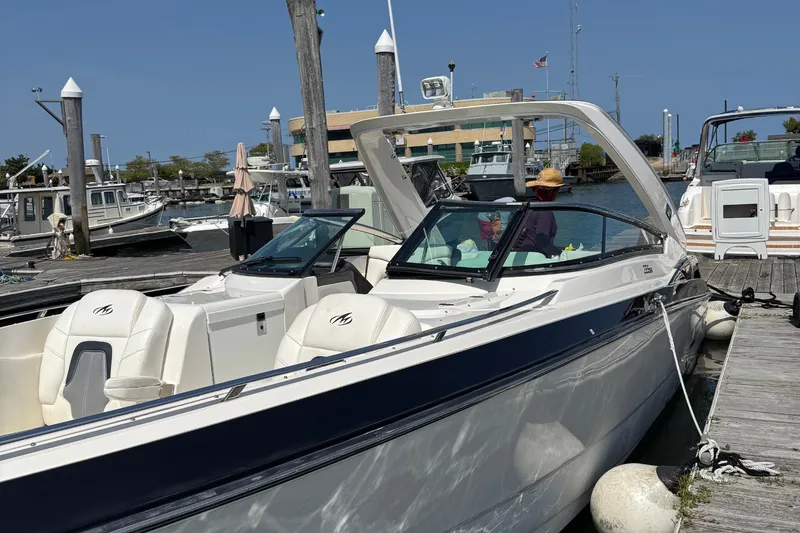 The 328SS is in a class of its own. 32'2" in length, this twin engine bowrider is a sleek and smooth machine packing a powerful punch. Features include a Monterey exclusive articulating sun island allowing for multiple seating and lounging configurations, a full head compartment with hot and cold water, and a spacious cabin that can accommodate two. Bring your family and friends along, seating areas are plentiful aboard the 328SS. Radar arch, and well appointed wet bar are only a few of the long list of standards available.